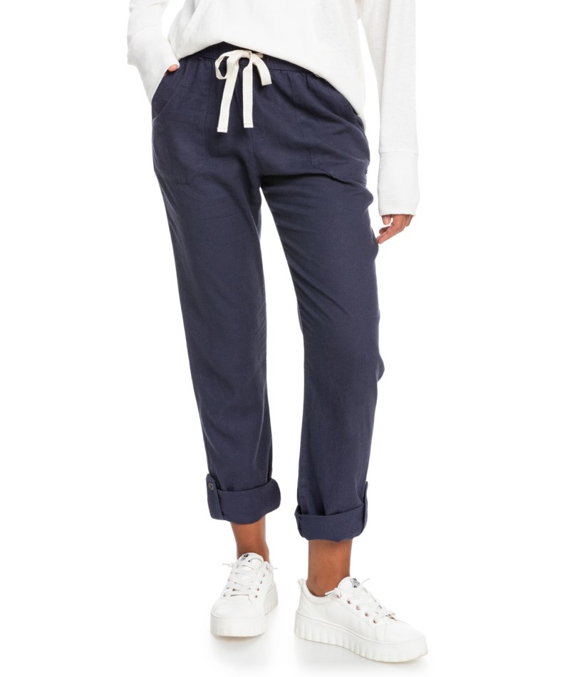 The On The Seashore pants combine a classic straight-leg fit with breathable fabric. Crafted in blended linen with a light hand feel, the beachy pull-on pants have an elastic waistband with a drawcord, front and back pockets, and a roll-able bottom hem for perfect warm-weather style.